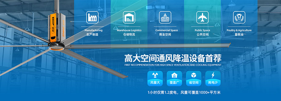 随着科技技术的发展,工业大风扇作为高大空间通风降温设备已经被广泛应用,与小型风扇和传统空调相比,大部分企业用户还是比较倾向选择工业大风扇,那么工业大风扇为何能得到业界的认可已经广大用户的信赖呢? 一、通风效果高效简单 工业大风扇的特质就是它简单直接的通风降温方式,通过扇叶带动气流将室内高温闷热的热
